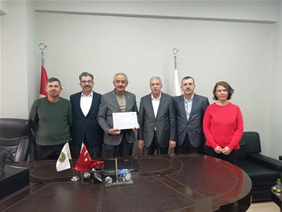 Bakanlığımız tarafından uygulanmakta olan Tarımsal Örgütlerin Derecelendirilmesi Sistemine göre, İlimizde Birinci Derece Tarımsal Örgüt Belgesi almaya hak kazanan Birliğimizi İl Müdürümüz Salih İNAN, İl Müdür Yrd. Ayhan ÖZDEMİR ve Şube Müdürü Kenan KILIÇ ziyaret etmiştir. Ziyarette Birlik Başkanımız Mehrali DELİKTAŞ'ın gayretli çalışmalarından dolayı tebrik edilerek Birinci Derece Tarımsal Örgüt Belgesi teslim edilmiştir.