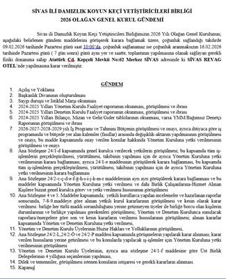 2026 OLAĞAN GENEL KURUL İLANI 09.01.2026 TARİHİNDE SİVAS İRADE GAZETESİNDE YAYINLANMIŞTIR DUYURULUR